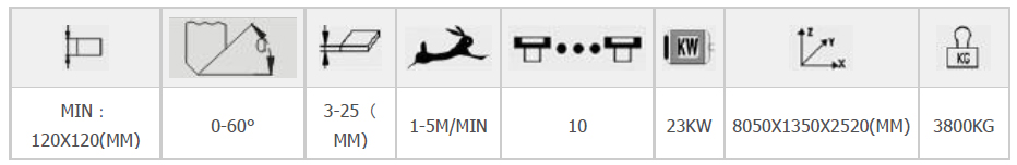 THE MACHINE IS APPLICABLE FOR GRINDING FLAT EDGE, ARRIS OF 45°;MITER CUTTING FOR GLASS OF DIFFERENT SIZE AND THICKNESS THE ROUGH GRINDING, FINE GRINDING, POLISHING FOR FLAT EDGE AND ARRIS BEVELLING IS FINISHED AT ONE TRAVELLING MAXIMUM ANGLE IS 60° .