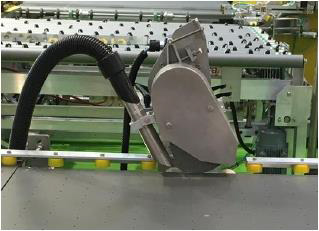 Edge deletion head mounted on a aluminium and stainless steel air floatation table. The top surface is fitted with engineering plastic boards to provide a flat surface for floatation, additional support wheels are fitted at the point of grind so air floatation is maintained. As with all air floatation tables large lites may require extra support if they overhang the edge of the table whilst being processed. Optionally we can offer larger tables to suit the maximum size glass required or simple additional support castor bars.