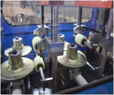 The rolling machine with 3 groups rolling cutter that make the profile that passed heat insulated strip, after clamping through rolling cutter to achieve insulation with aluminum strips closely.